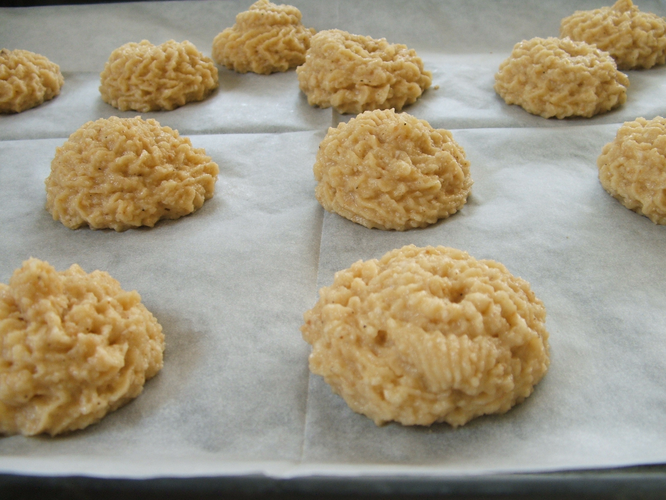 (אם מוותרים על שקית הזילוף, משמנים מעט את הידיים ויוצרים עיגולים בגודל אחיד, מעבירים לתבנית אפייה)