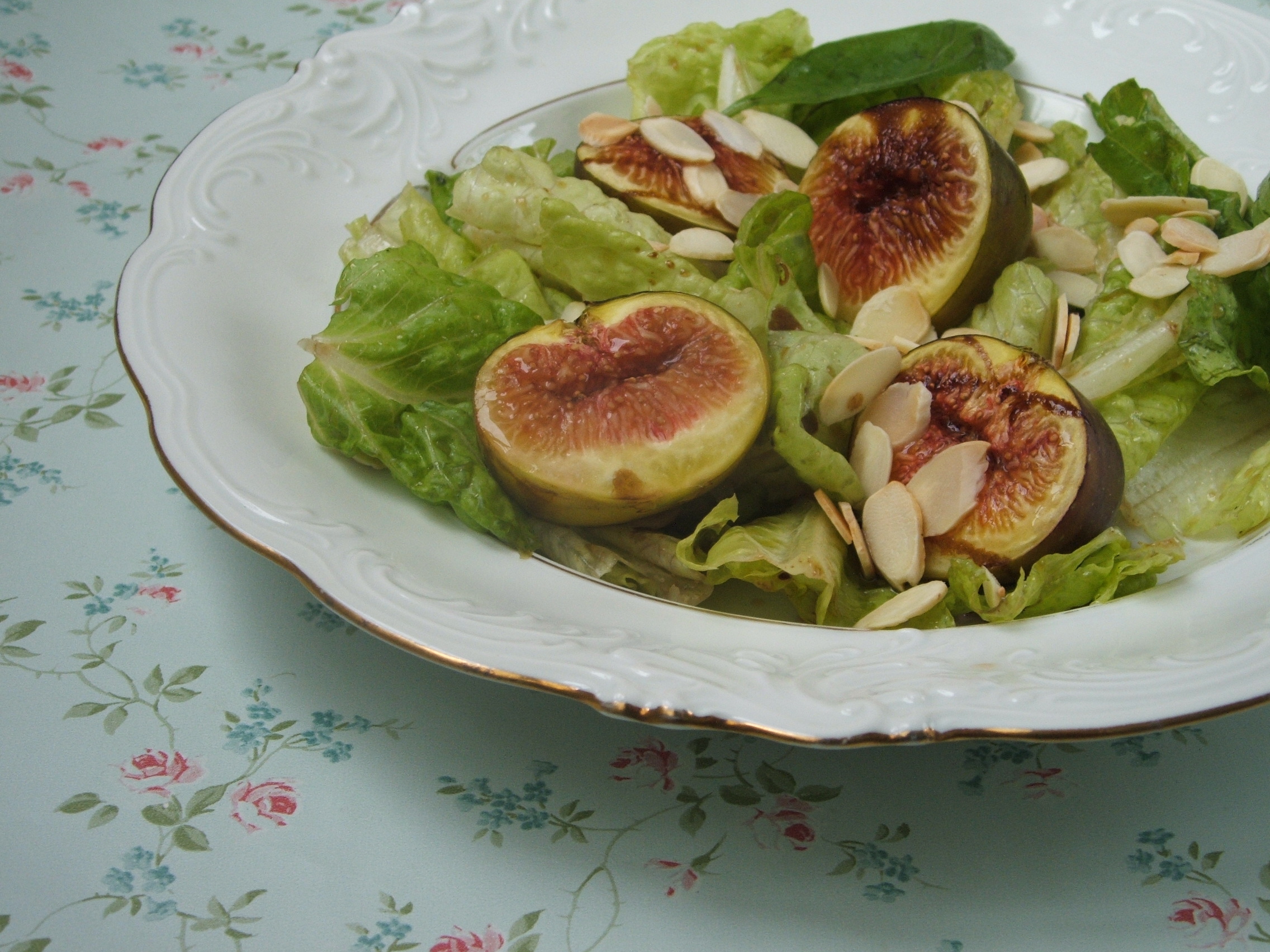 בהשראת המנות הראשונות הכנתי סלט חסה עם תאנים בשלות ומתוקות שמצאתי בשוק, קצת לפני שעונתן מסתיימת.