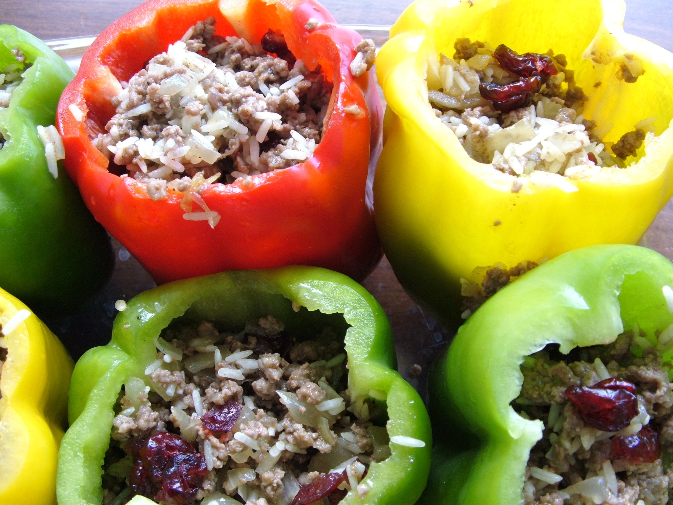 הנה הוורסיה שלי לפלפלים ממולאים, הכוללת חמוציות מיובשות לקונטרסט מעניין עם הבשר.