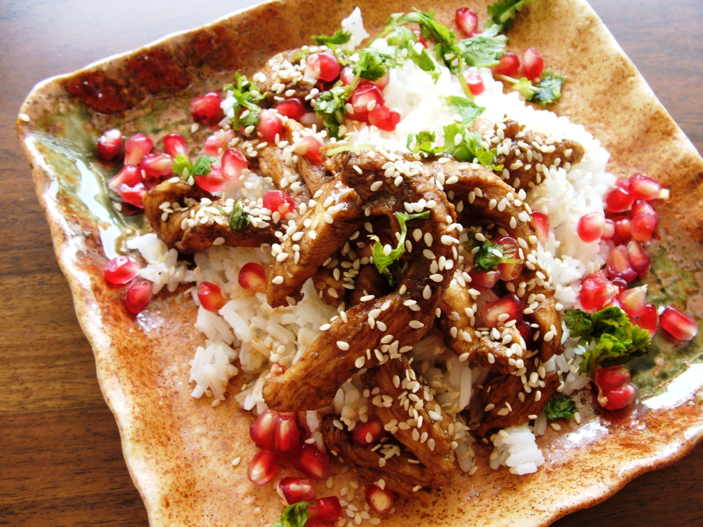 מנה צבעונית וטעימה מקושטת בגרעיני רימון וכוסברה וקלה להכנה.